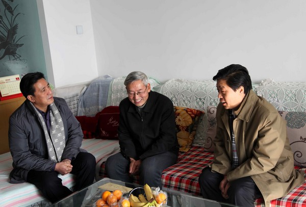 1月14日,寶雞市副市長武軍和市總工會(huì)副主席李曉蘭一行,率相關(guān)部門負(fù)責(zé)人來寶光集團(tuán)慰問“全國五一勞動(dòng)獎(jiǎng)?wù)隆鲍@得者王歲有同志,代表寶雞市送來了1000元的勞模慰問金,并同王歲有同志及家屬進(jìn)行了親切的交談。同時(shí)市總工會(huì)李曉蘭副主席代表寶雞市總工會(huì)對我公司申請的10名因疾病等情況造成臨時(shí)生活困難的職工每人送來了500元的困難慰問金,并與我公司的部分困難職工進(jìn)行了座談,希望大家在政府和企業(yè)的幫助下戰(zhàn)勝困難,并祝大家新年快樂。