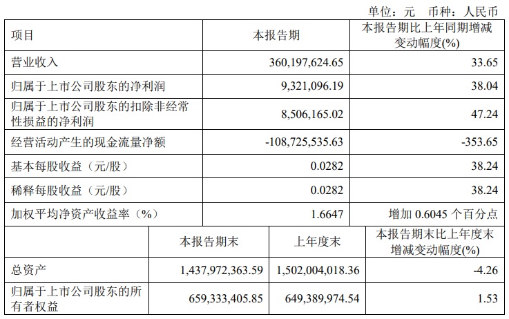 寶光股份2023年一季度主要財務指標