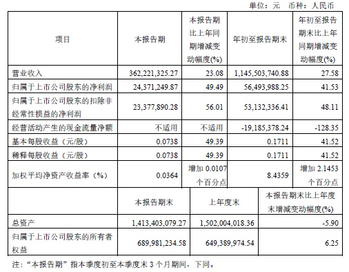 寶光股份2023年三季度主要會(huì)計(jì)數(shù)據(jù)和財(cái)務(wù)指標(biāo)