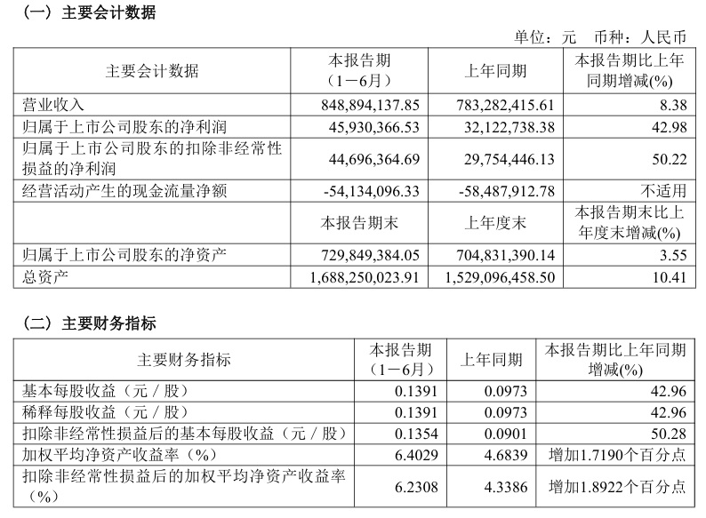 寶光股份2024年半年度主要財務(wù)指標